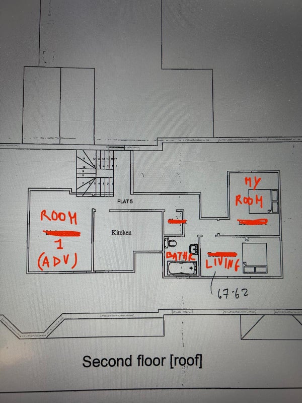 Accommodation: 2 bedroom flat with kitchen, shared bathroom, living room and a small storage room.