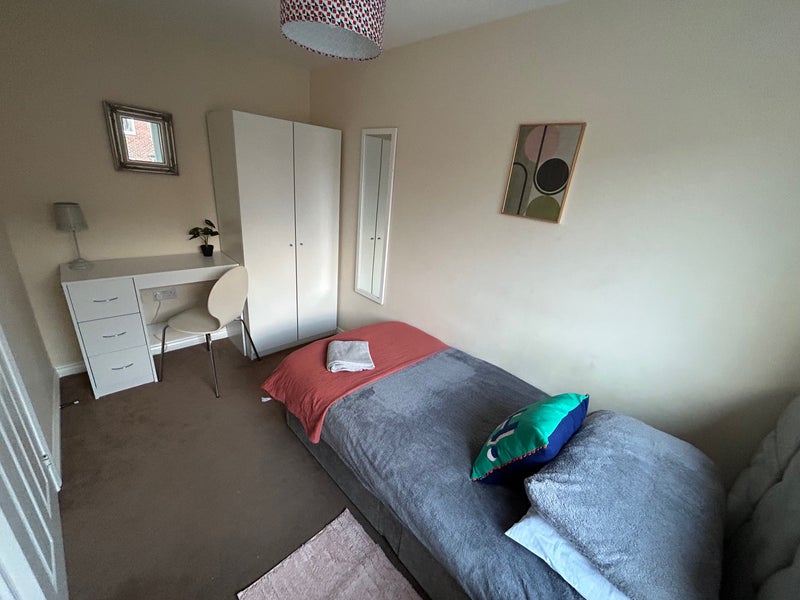 A really nice single room close to the hospital. Very nicely decorated and very clean and tidy. It is in a 4 bedroom house in Maybush.