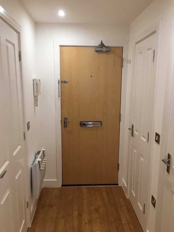The property comprises an entrance hallway with a large storage cupboard and a door leading to the bathroom with toilet, bath and shower over bath. Enter through the second doorway into the main living area which comprises a bedroom area with space for a double bed, bedside table, wardrobe and chest of drawers. Go through the archway into the living room and kitchen area. The modern white kitchen includes an integrated fridge freezer, oven, hob, integrated washer/dryer and a waste disposal unit. This property is unfurnished and comes with double glazing and electric heating.