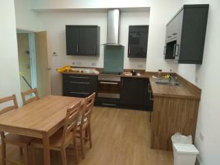 The carefully designed fully fitted kitchen include oven, hob, extractor fan, fridge & freezer, washing machine/dryer, while the open plan living area has new dining table with 4 chairs, sofa and TV bench.
