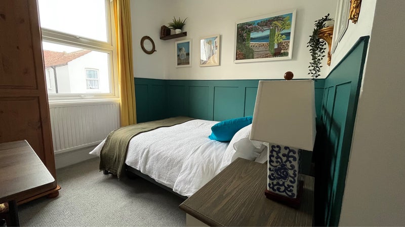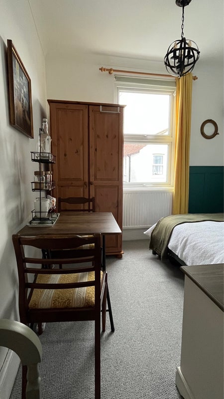 Your room has a double bed and fully furnished with table, 2 chairs, electric points with two USB B/C sockets and a wardrobe, I provide linen/ pillows/ duvets for summer/winter and towels, unless you bring your own. It is up to you. The window has a blind and curtain and there is a radiator with double window.