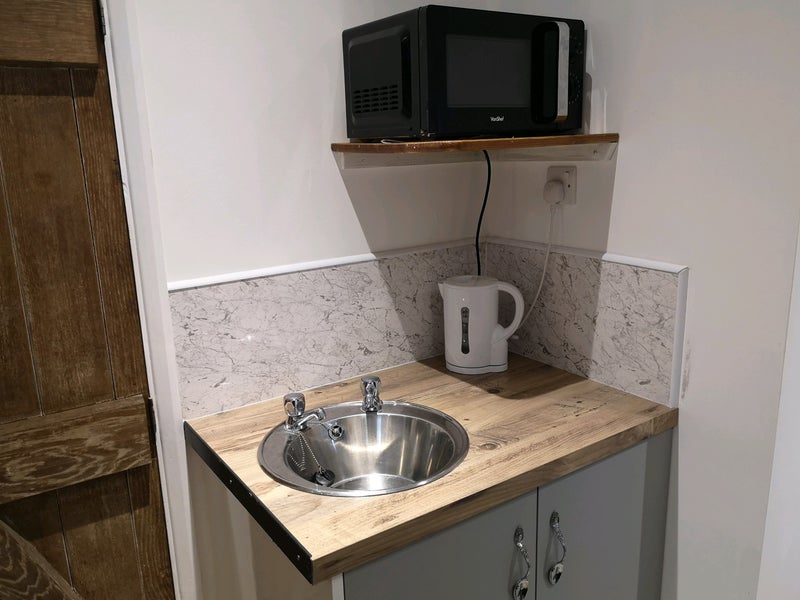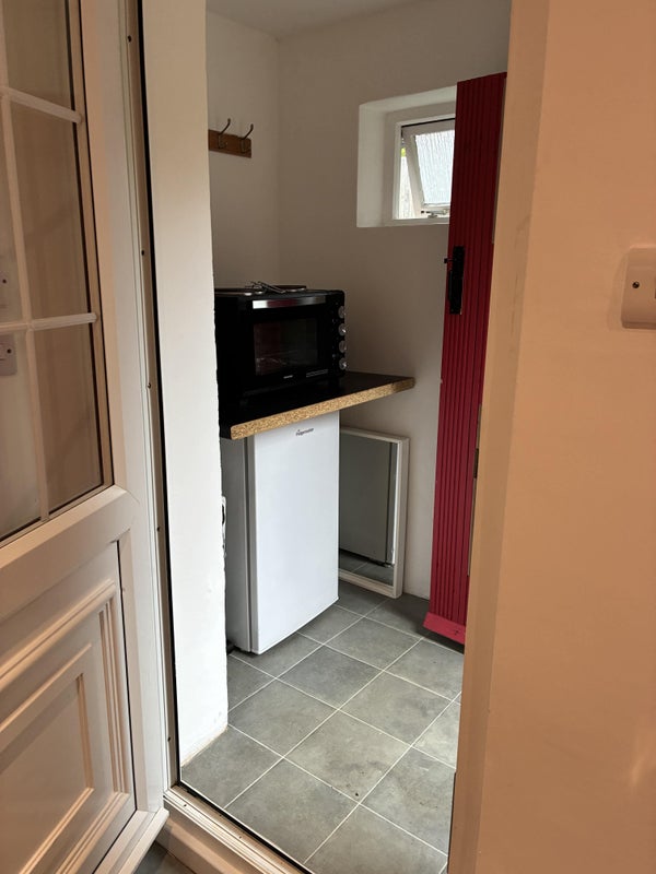 The room is a cosy and well-equipped self-contained double studio, with its own toilet, shower and private entrance. It was newly refurbished in 2021. There is a microwave, small kitchen sink and standard under counter fridge, and washing machine included.