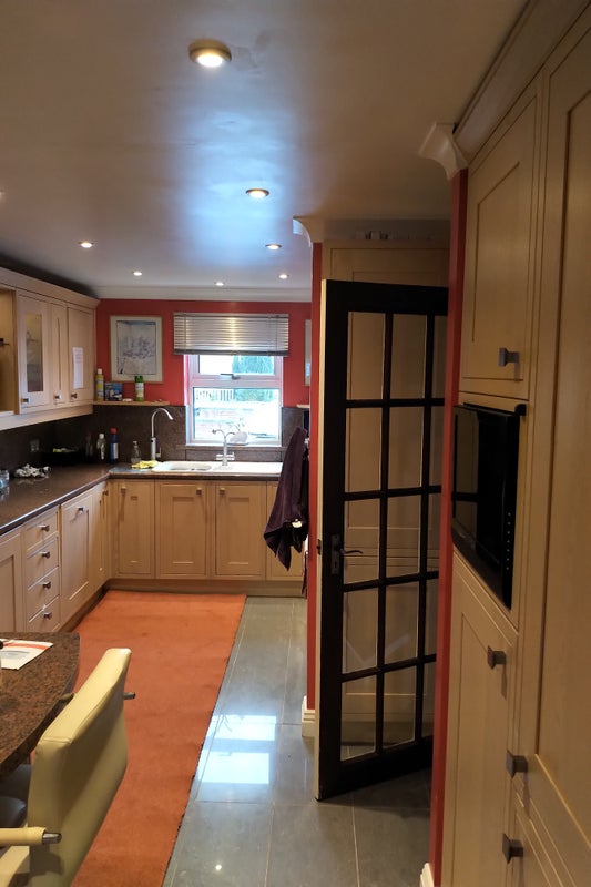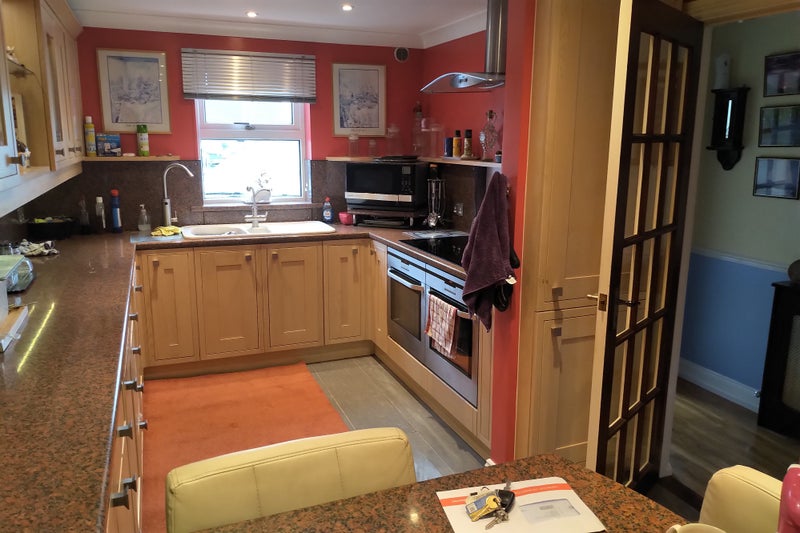 Modern shared kitchen, Large garage workshop / utility.