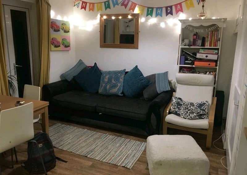 The house has a communal kitchen and living room and a shared bathroom. There is a medium sized back garden with a patio.