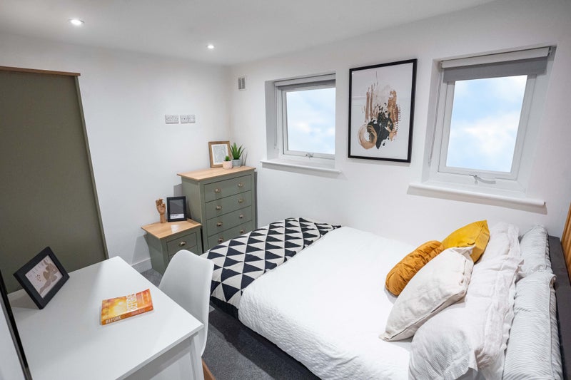 Each double bedroom comes with its own en-suite with luxury rainfall shower, so you can skip the shared bathroom morning queues. You’ll also have plenty of storage, a desk for when you finally decide to hit the books, and superfast WiFi to help you procrastinate like a pro.