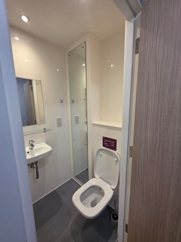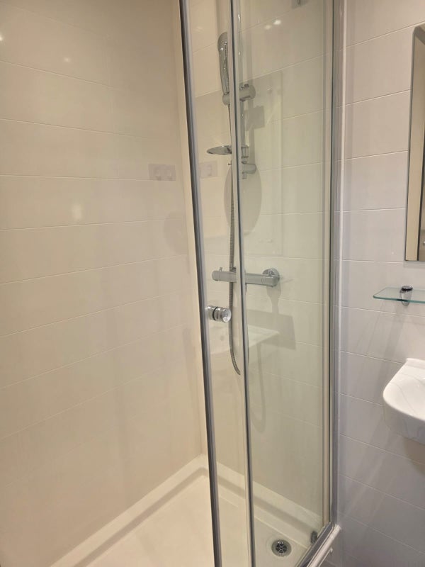 An en-suite bathroom with a shower, WC (With provided toilet brush), basin, and a full-length mirror to ensure you look your best.