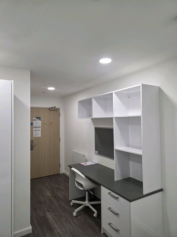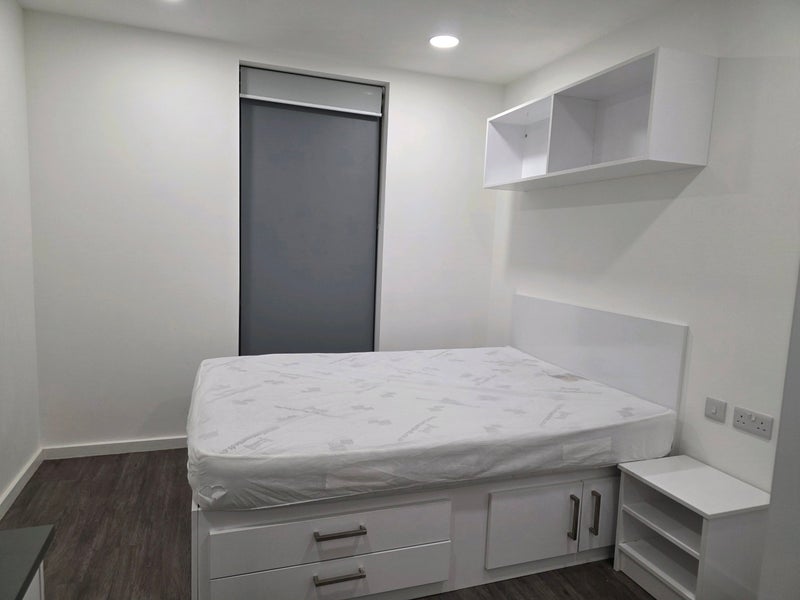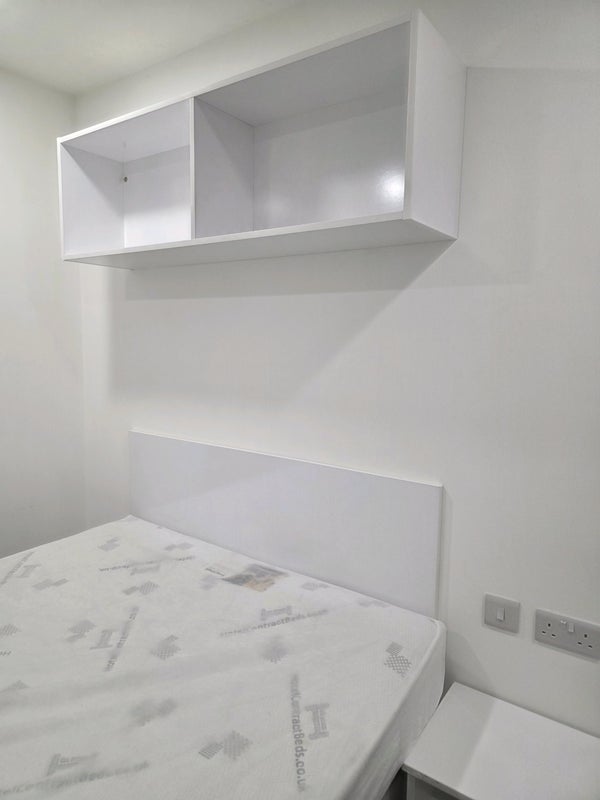A cosy double-size bed (With a mattress protector provided) with under-bed storage to keep your belongings organised.