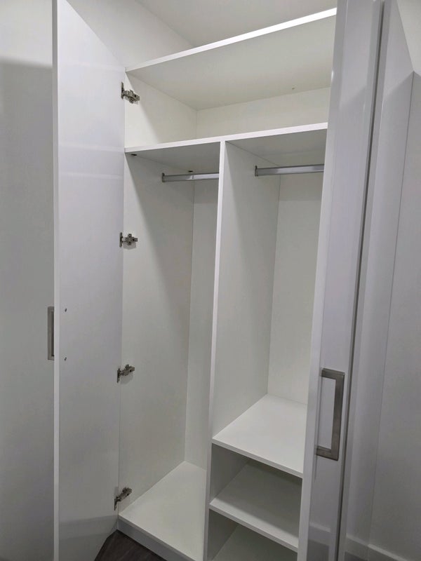 A generous double-door wardrobe provides plenty of storage for your clothes.