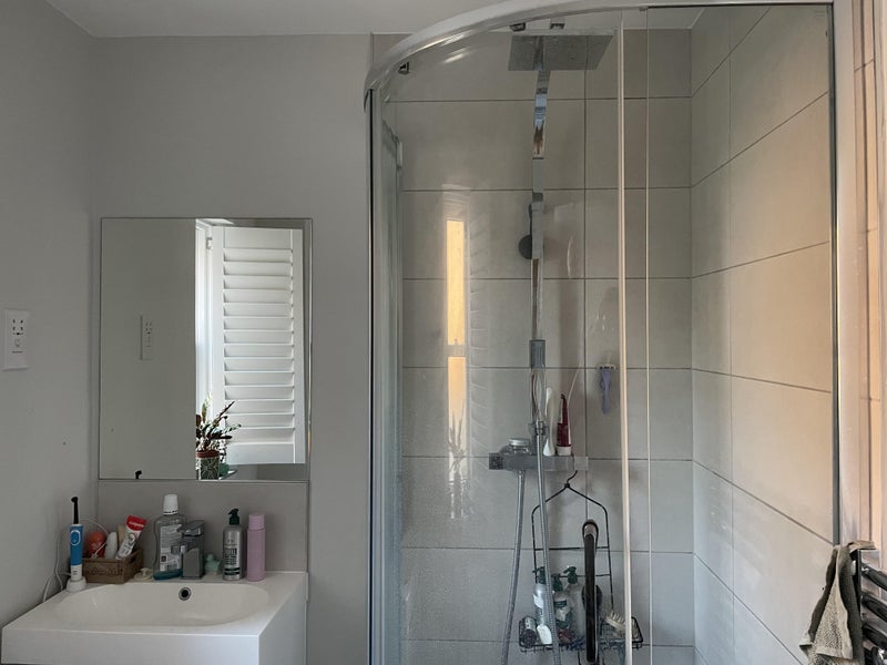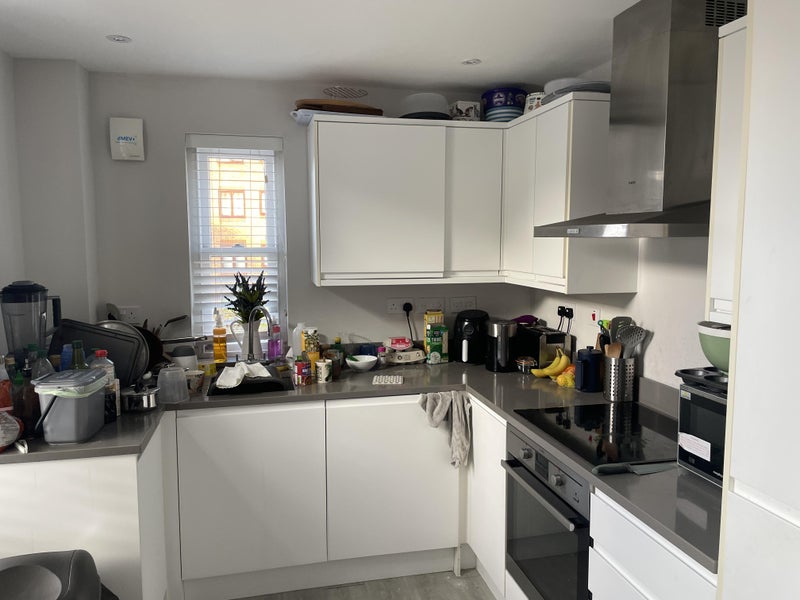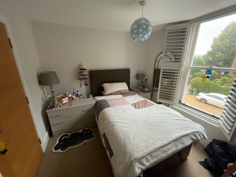 The room comes fully furnished (including crockery and kitchen equipment) with a double bed with storage beneath, a bedside table, a chest of draws and a clothes rail. It is at the back of the property overlooking another apartment block, so is very quiet and off the main road. The two bedrooms are also at opposite ends of the flat, so there is no noise bleed through the walls.
