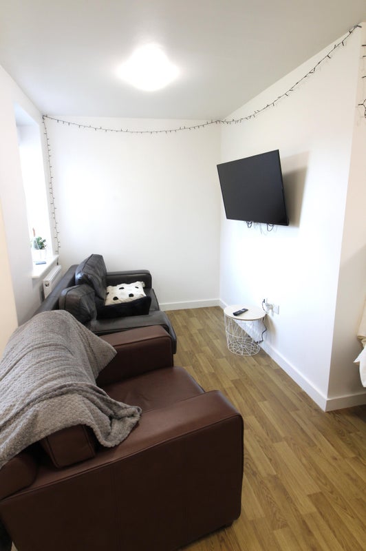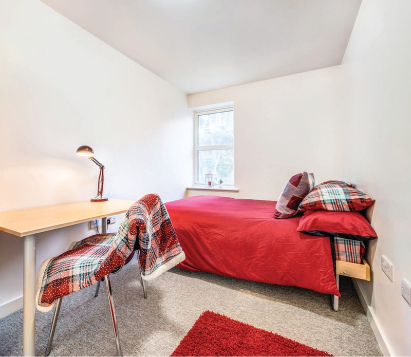 Each flat has been designed especially for students and built to a high specification. Fully furnished with small double beds, leather sofas, Smart TV, dishwasher, laundry appliances and is fibre broadband ready.