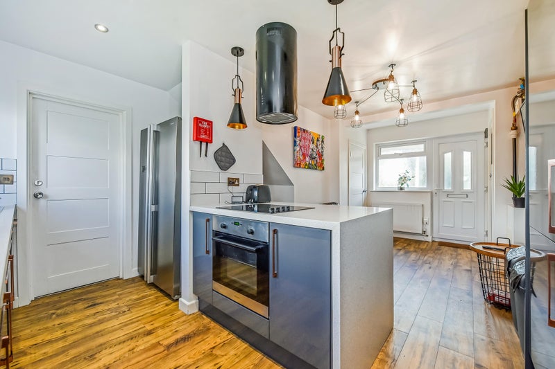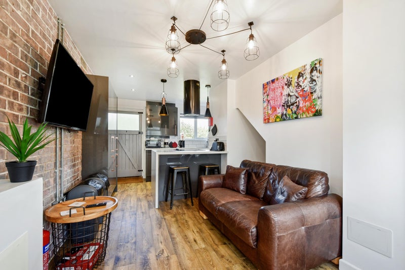 Finished to a high standard, the house features a fully fitted kitchen complete with a washing machine, dishwasher, American-style fridge/freezer, oven and hob, along with an additional communal living space and wall-mounted TV.