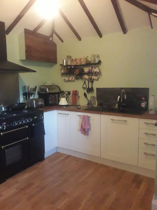 Furnished double room in old gatehouse. Off road parking in countryside. Peaceful orchard. Shared kitchen and bathroom. No Smoking. I have 1 old cat.