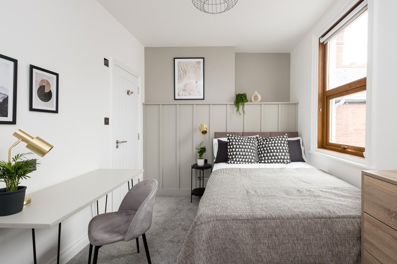 Room 3 - £665: available 14th May: Quiet double room with en-suite at rear of property. Room includes a desk area, soft chair and lots of storage. All bills included.