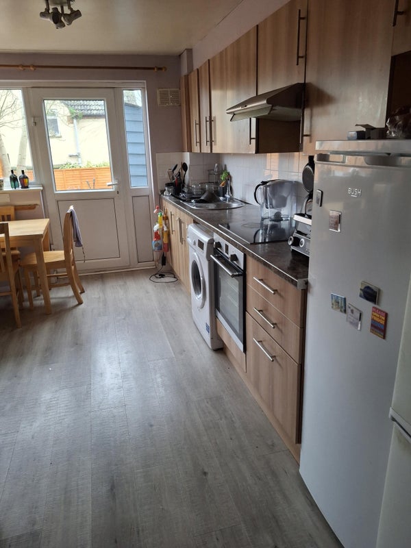 On the ground floor there is a large kitchen/diner which is well equipped and has a door to the garden and a separate, shared living room