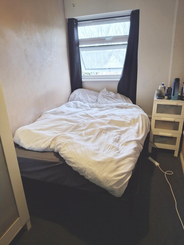 The room is in a spacious town house. and is situated on the top floor. There is plenty of storage space in the room. Only one person can live in the room. There are two other tenants on that floor and there is a shared shower room..