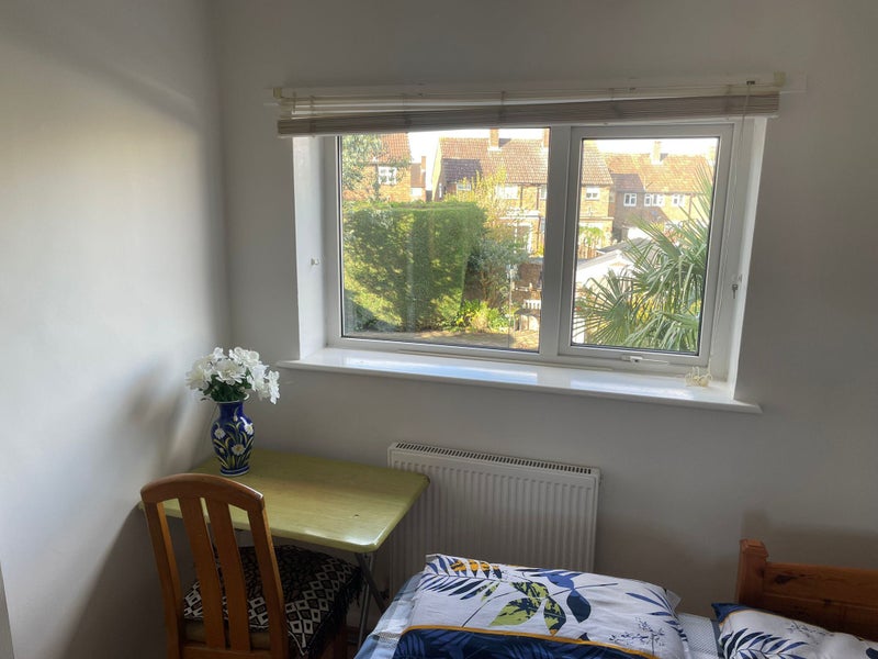 Spacious, well furnished and vibrant room available in a peaceful house surrounded by greenery in Borehamwood - access to Elstree and Borehamwood station by bus, 3-4mins walk to bus stops, Park 2min walk away, bus access to Morrisons and Stirling corner.