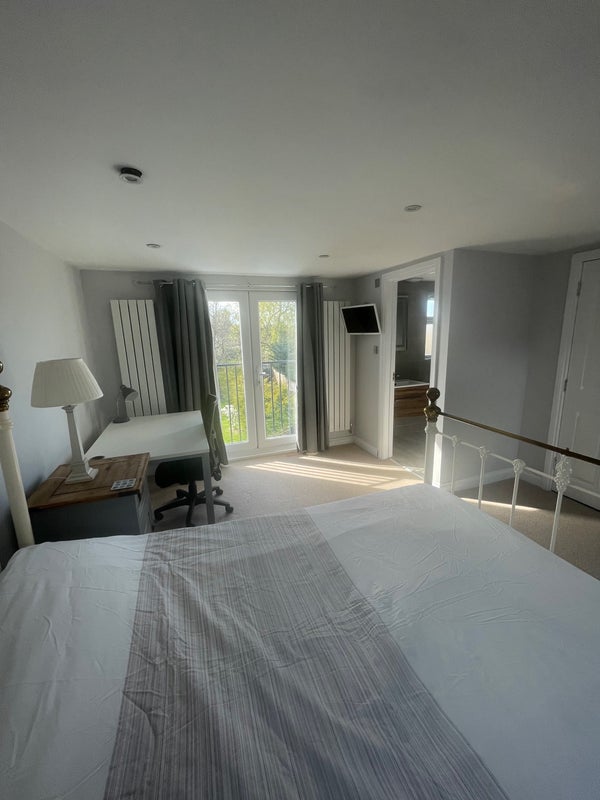 A stunning, spacious double room set within a modern loft conversion, featuring a Juliet balcony with double doors overlooking the back garden.