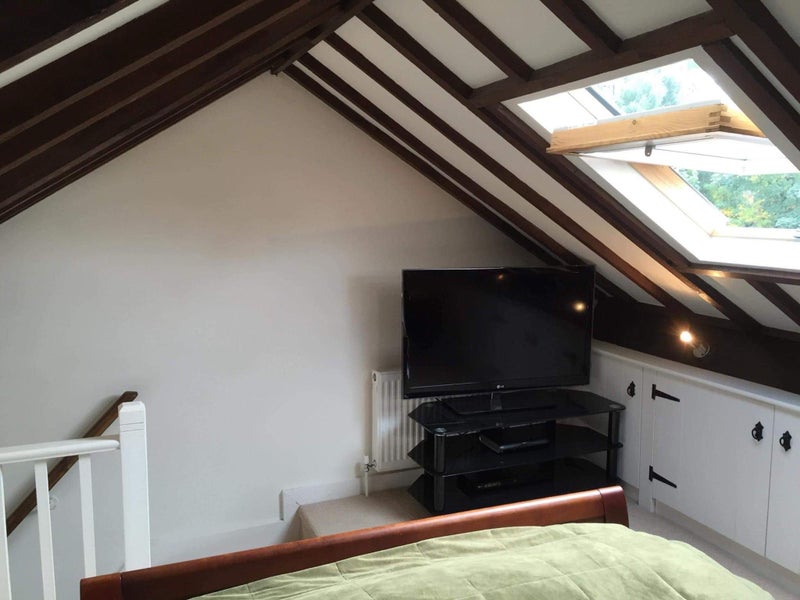 Double loft room, with additional room and wet room for rent. Comfortable bed. Linen and towels provided. Off street parking. Five minutes by car to station.