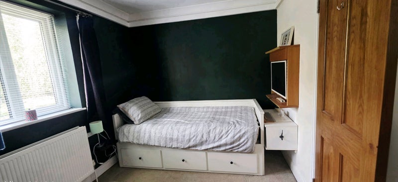 We have a freshly decorated cosy small double room in a spacious shared house with a garden and parking.