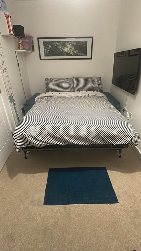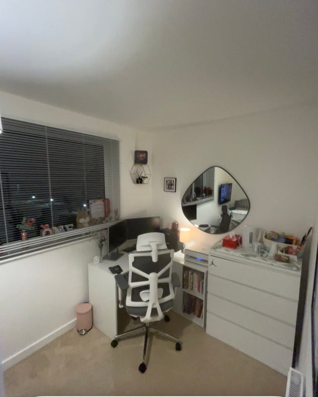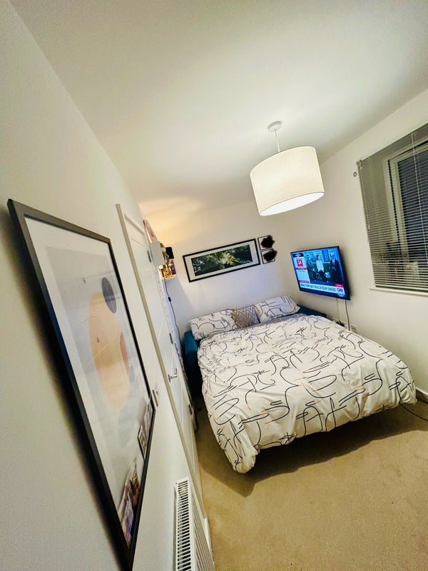 Single room has a work/study desk furnishing, a double bed, a chest of drawers, and a smart TV (with Netflix, BBC iPlayer, Prime, YouTube, etc).The room shares a clean, modern, spacious bathroom with one room.