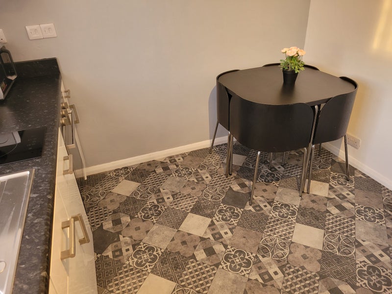 * Kitchen with fridge/freezer, microwave and air fryer