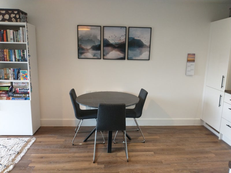 Located in a quiet, friendly neighbourhood. The entrance to the flat is opposite the canal. It is a 10 minute walk down the canal to restaurants on Aspley marina.