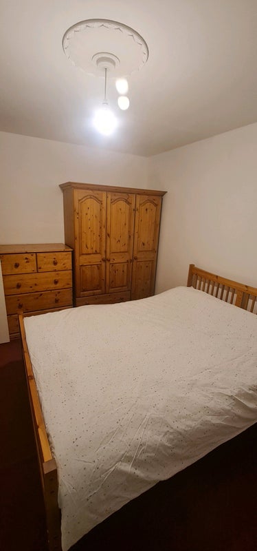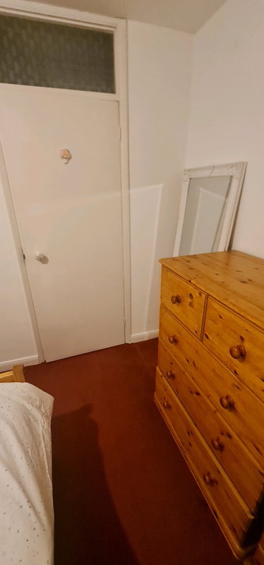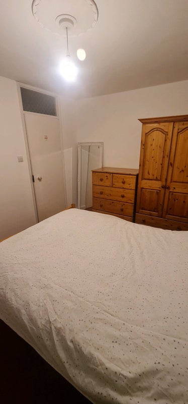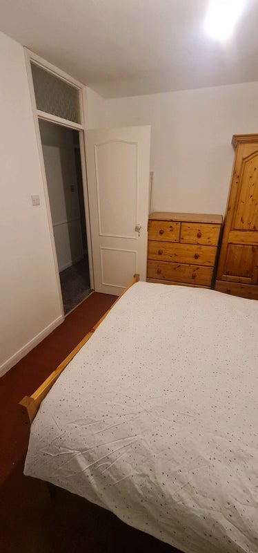 A bright and fully furnished double room available in a spacious 4-bed detached house shared with a live-in landlord. The room comes with a double bed, mattress, side table, chest of drawers, and wardrobe (wardrobe only in the larger of the two double rooms).