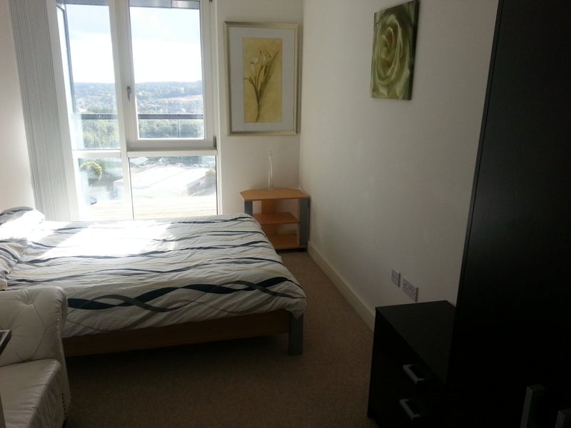 Air con in main room water softener ,Double room with double bed built in sliding mirror wardrobe ,tv etc your OWN family size bathroom and shower and WC and use of all cable fibre wi fi TV 3 mins walk. Sports Centre