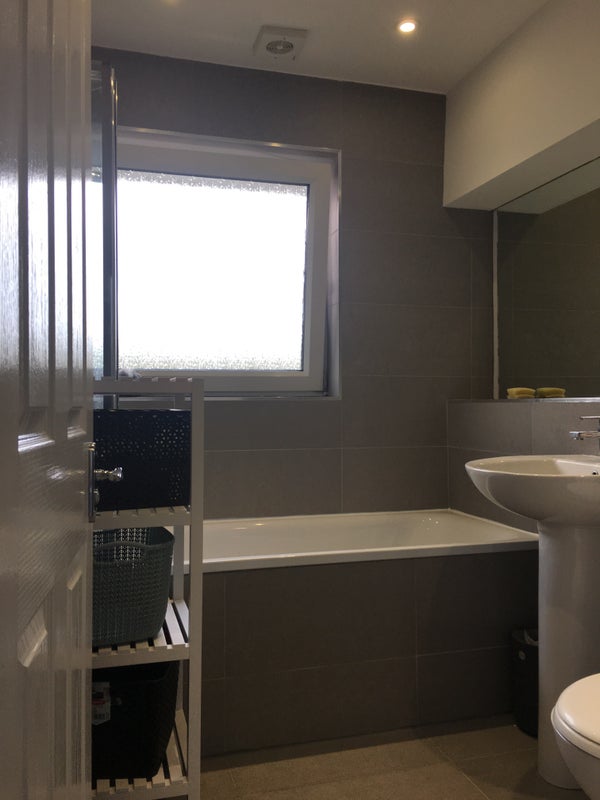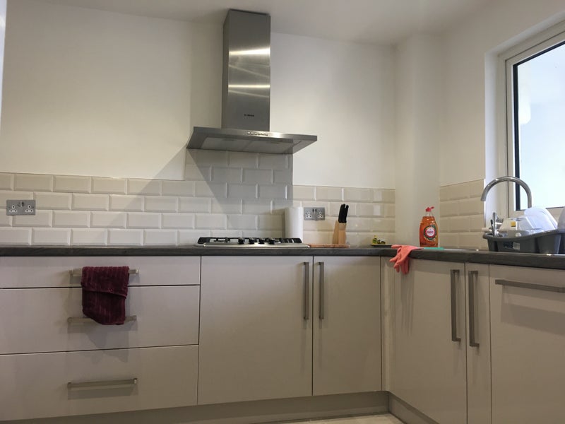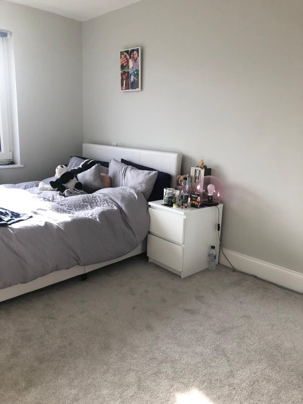 Beautiful spacious double bedroom available to rent in a split level modern flat. memory foam mattress on an ottoman storage bed, a dressing shelf and a triple wardrobe included. There is enough space for a desk in the room should you require one, as well as plenty of parking.
