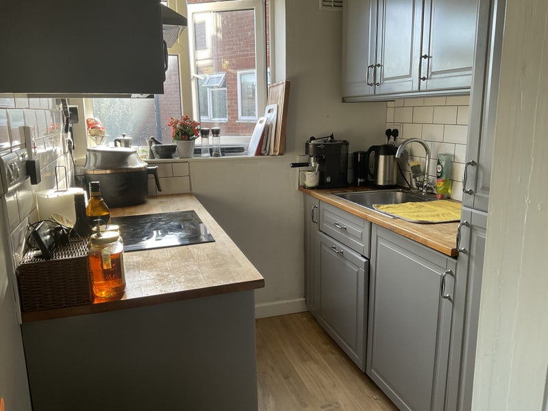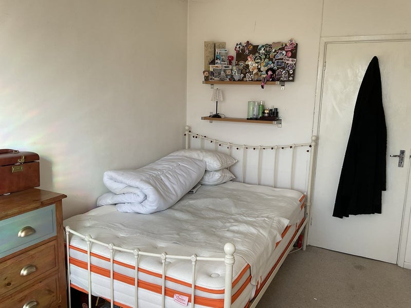 It is a spare room in a super cute 2-bed flat located right next the train station that has a straight line into Liverpool Street and Tottenham Hale. (45minutes) It’s 2-bed, 1-bath with a separate living room and kitchen. The room is partially furnished and the kitchen is equipped with a dishwasher and washing machine. Working fire place.