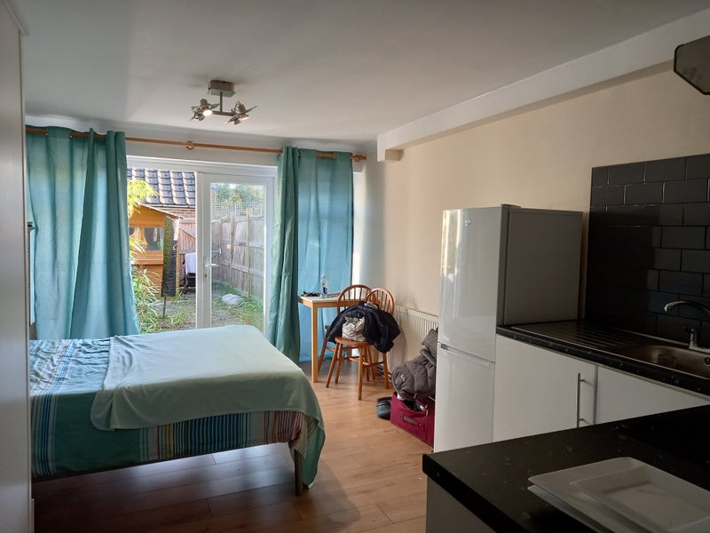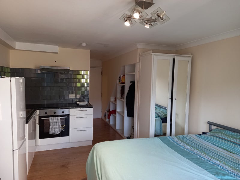 COUPLES WELCOME! This house is very near Hertford East station close to the town centre. The studio has its own kitchen and ensuite bathroom and furnished with a double bed, wardrobe and chest of drawers.