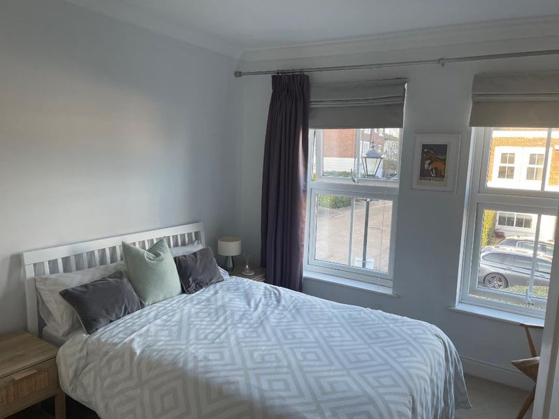 The room is situated on the first floor facing into the Close and has two large windows allowing for a bright & airy outlook. It is fully furnished with double bed, bedside cabinets and full-height fitted wardrobe. The rest of the house is fully furnished with Fibre broadband and TV. Additional media packages are available.