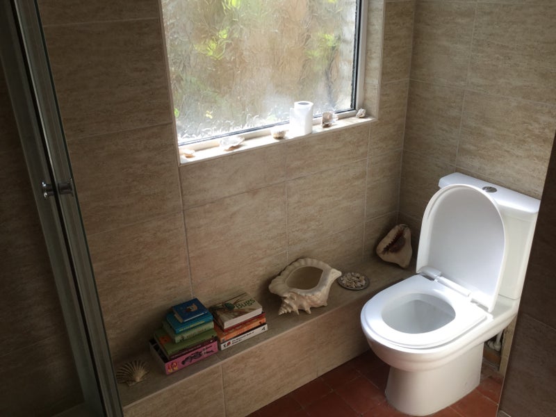 Kitchen double doors lead out from the kitchen to a sunny garden with paved area, seating, outdoor sound system, grassed area, herb garden and shed for bike storage and tools.