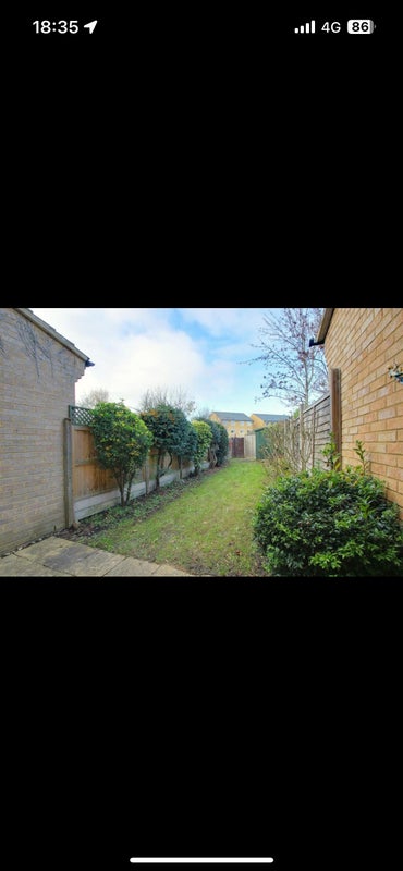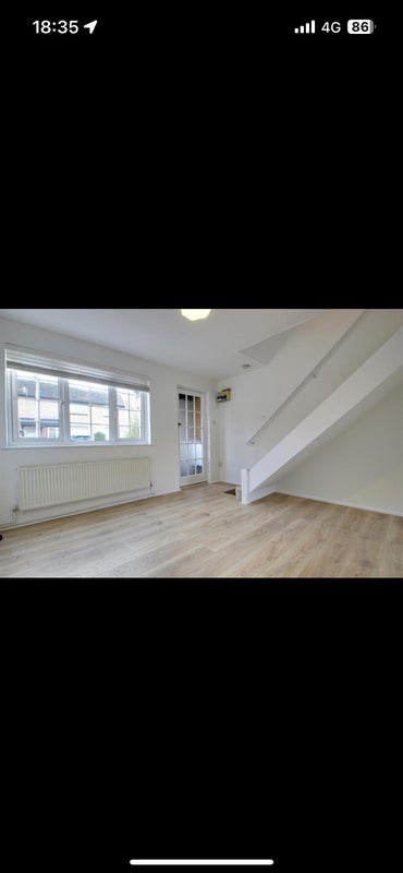 Two stories with a bedroom/ bathroom upstairs. Living room and kitchen which looks out onto the garden. There is a shed in the garden for extra storage. 1 driving space with an option of a parking permit.
