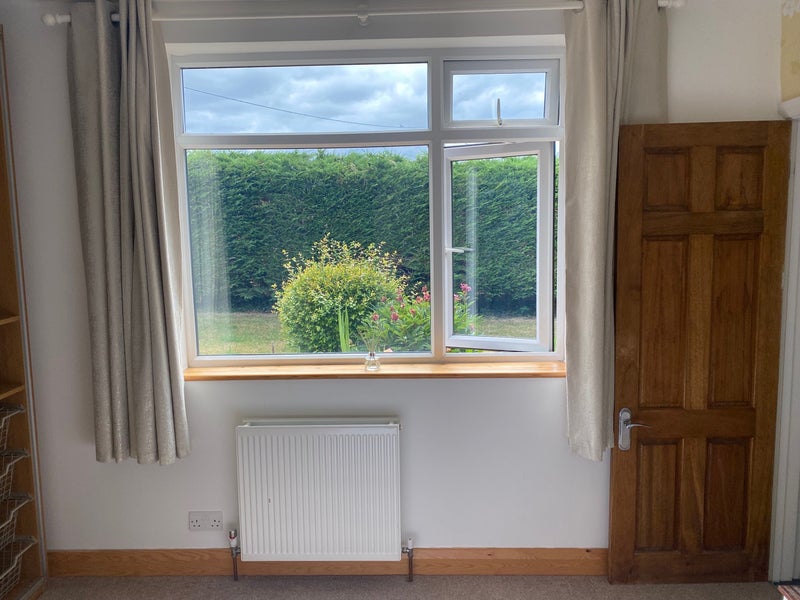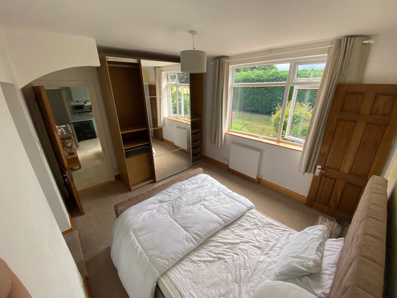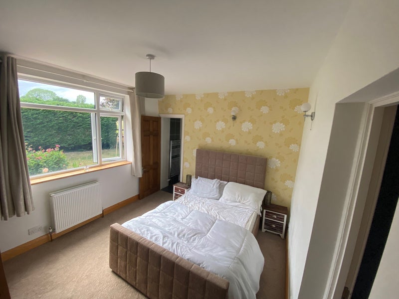 Bright double ground floor room with large double wardrobe & en-suite bathroom with doors for direct access to kitchen area & lounge. Lots of garden space, rear patio & also a summer house for BBQs etc. during the summer months (or any other time if you’re brave enough!). I also have two very friendly dogs who will love you if you’re ok with it.