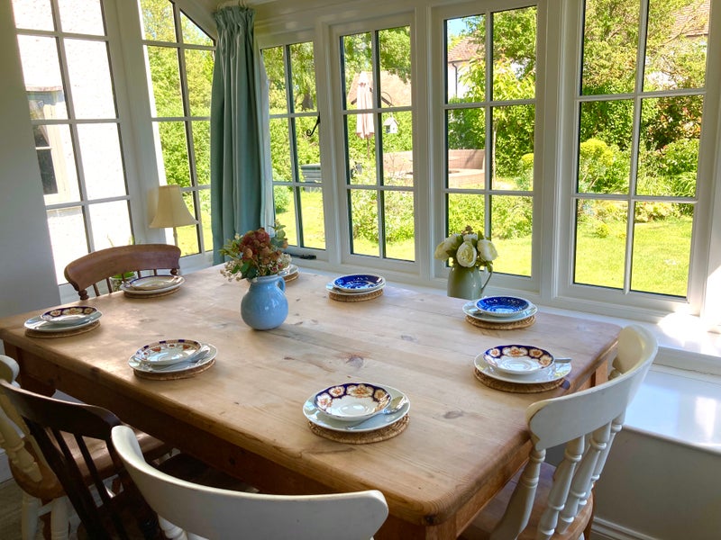 We live in a historic house on the village green in Pirton near the village pub and church. The bedroom has a TV, desk and there is a separate study space included in a room we don’t use. We also have a lounge and kitchen - dining room and meals are included or you can prepare your own or a hybrid combination, plenty of fridge space.