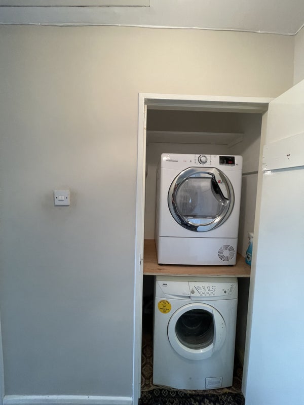 Furnished now with a double ottoman bed with storage, desk, chair, wardrobe and double width drawers and an additional fridge. Large enough to work from home if required. All bills inc.