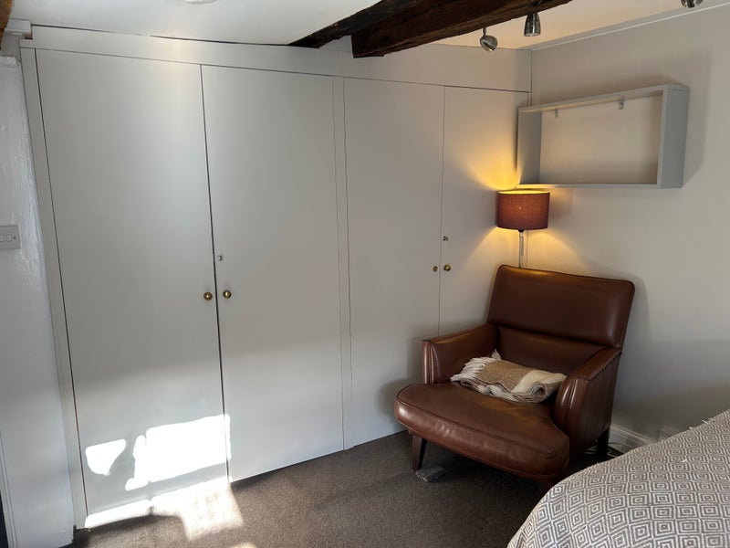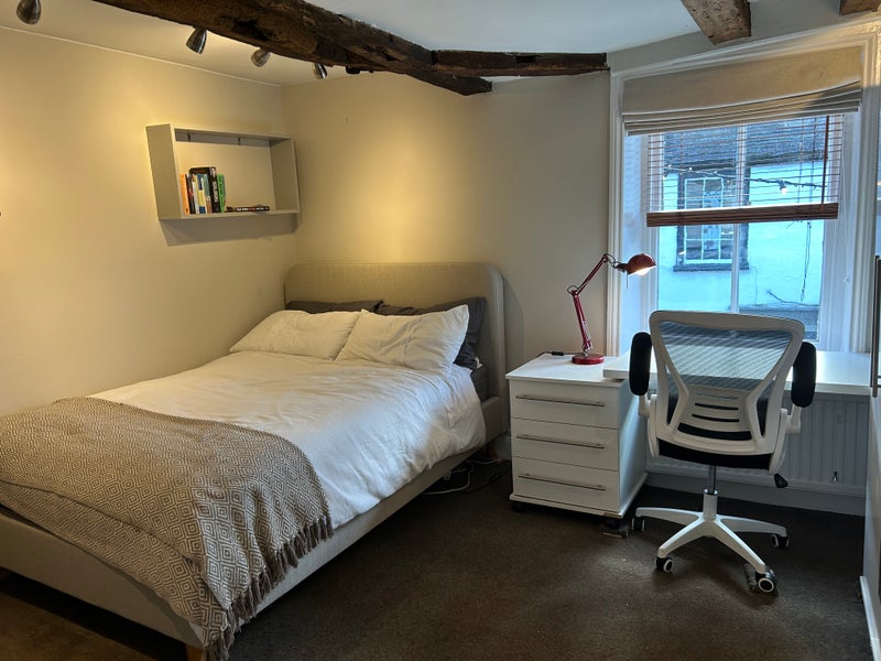 This room is located in one of the nicest parts of St Albans , a stones through from the Cathedral and park and above a stylish hairdressing salon in lovely George St with its' independent upmarket shops and restaurants .