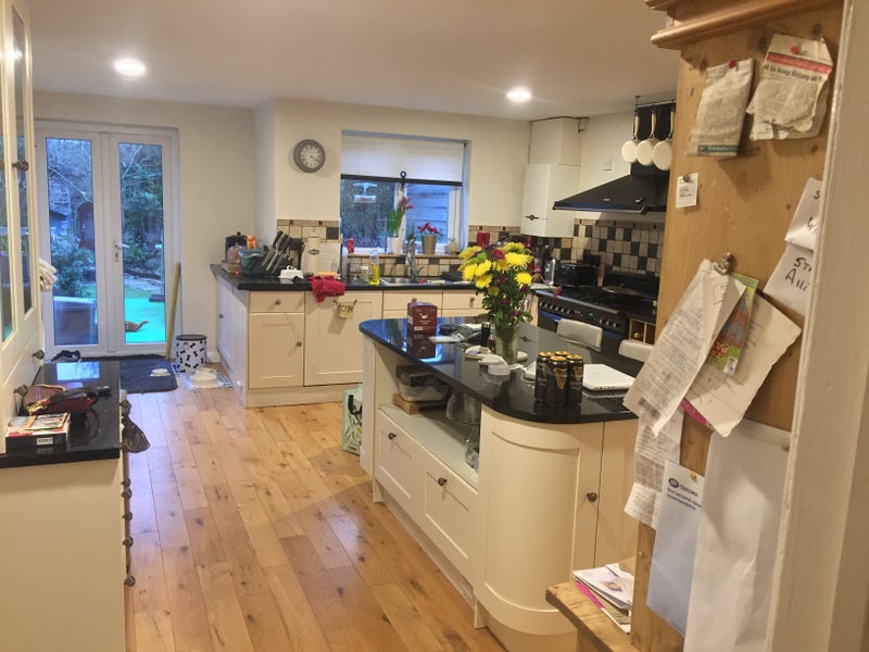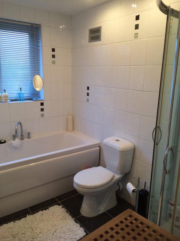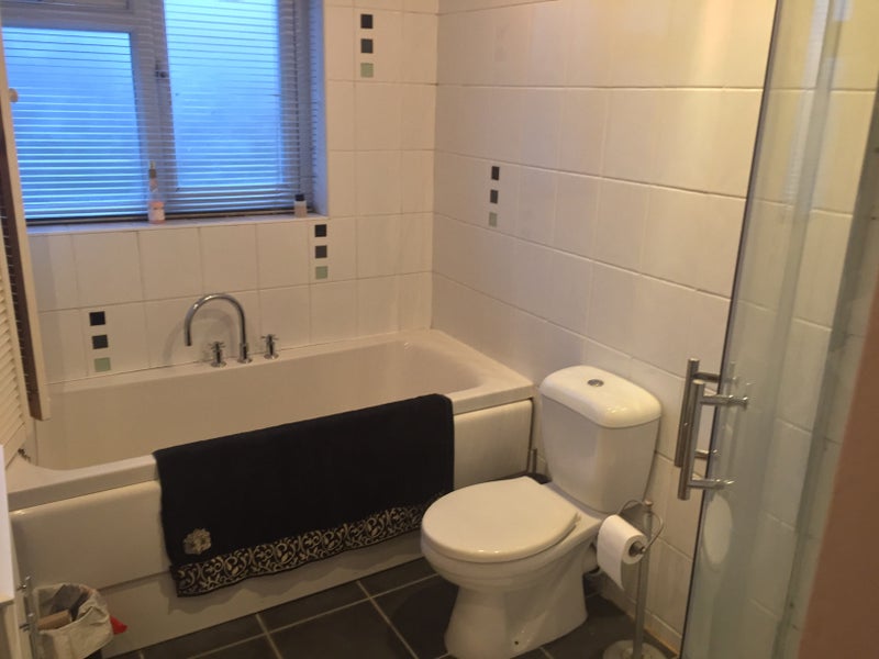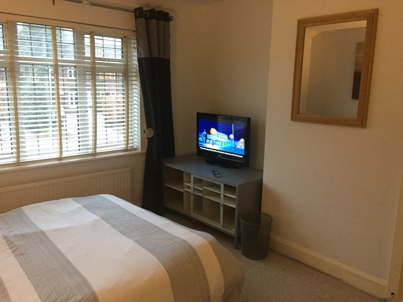Very clean Double room in large semi detached house. The room includes own bathroom and toilet, wardrobe, tv, double bed with new mattress in a clean environment ,large kitchen dining area ,patio decking in the summer.