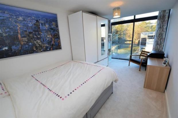 The double bedroom is well sized. It currently has a wardrobe, bed side table and a wooden storage unit (no chair or artwork). The photo of the bedroom is dated as I have used it as a study since but it has been painted recently.