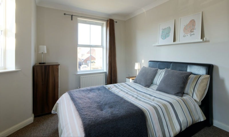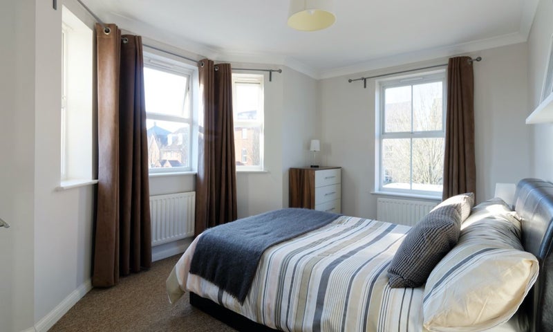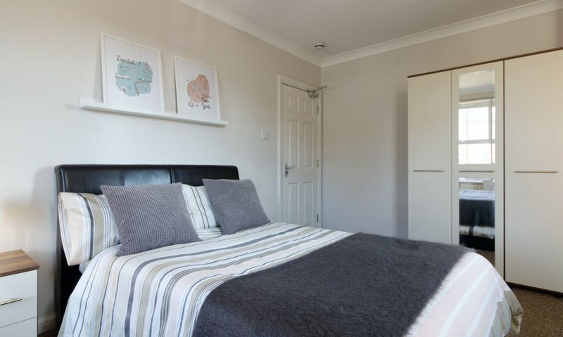 • Fully furnished with double bed, orthopaedic mattress, bedside cabinet, chests of drawers and wardrobe.