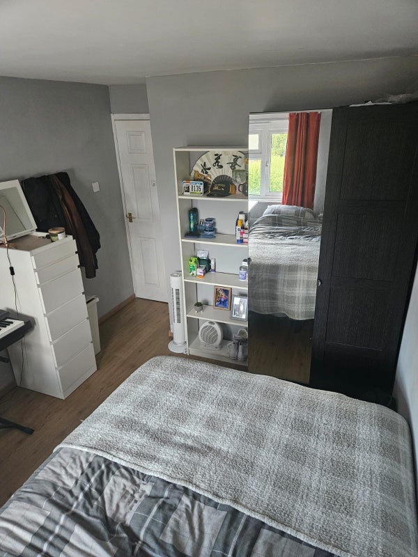 Access to parking spaces, garden, living room, and shared bathroom & WC (shared between max 3 people). Room Furniture included is a double bed, wardrobes. The current wall colour is grey.