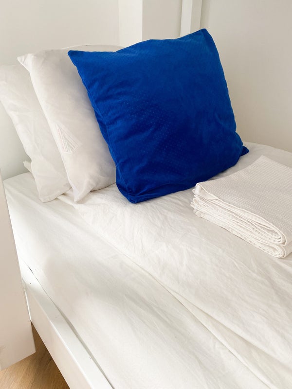 The rooms is relatively small (around 9sq m) and comes with everything you need, the bed sheets, feather pillows and a feather duvet, a desk and a chair, and I can also provide you with the towels if needed.