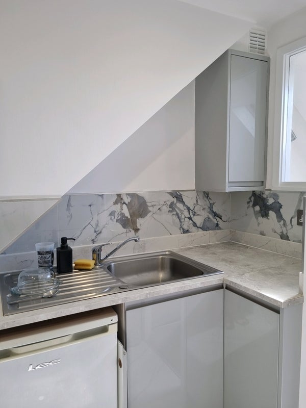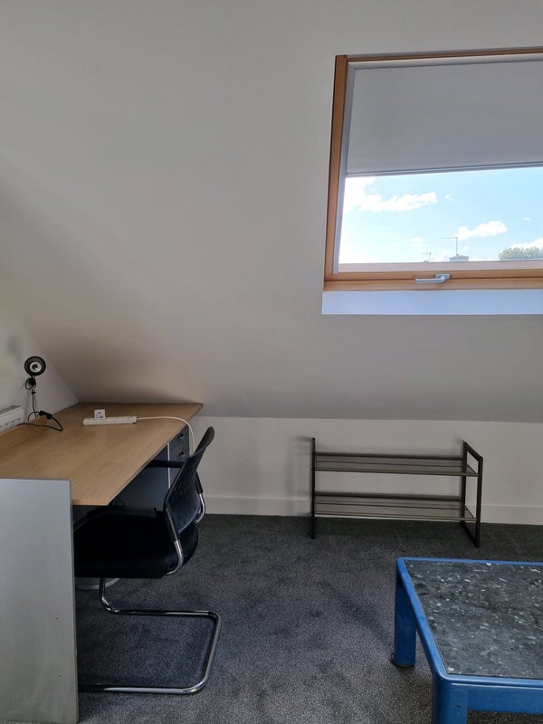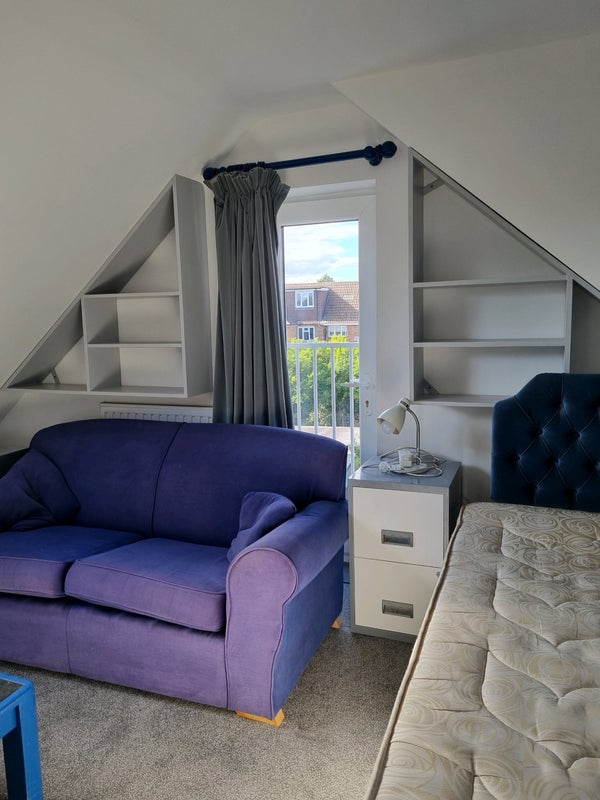 Large single room in shared flat. Ensuite WC, shared kitchen and shower room with 2 others. Beautiful light loft room with plenty of space including WFH area. Fast Internet and all bills included. Ample on street parking in quiet cul de sac. Close to bus routes.