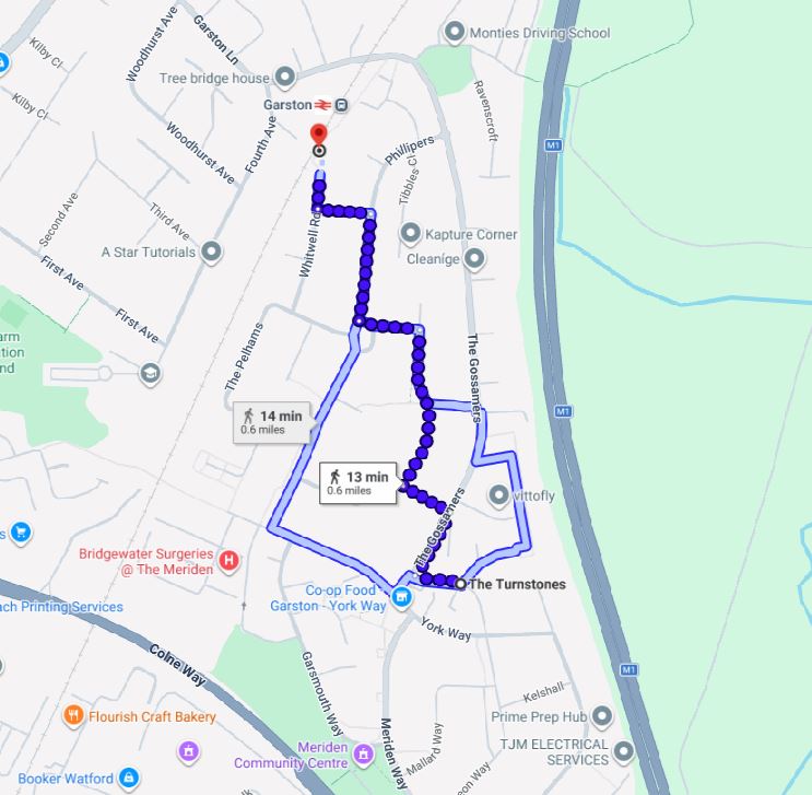 * Garston Station approximately 0.4 to 0.5 miles (around 10-minute walk)