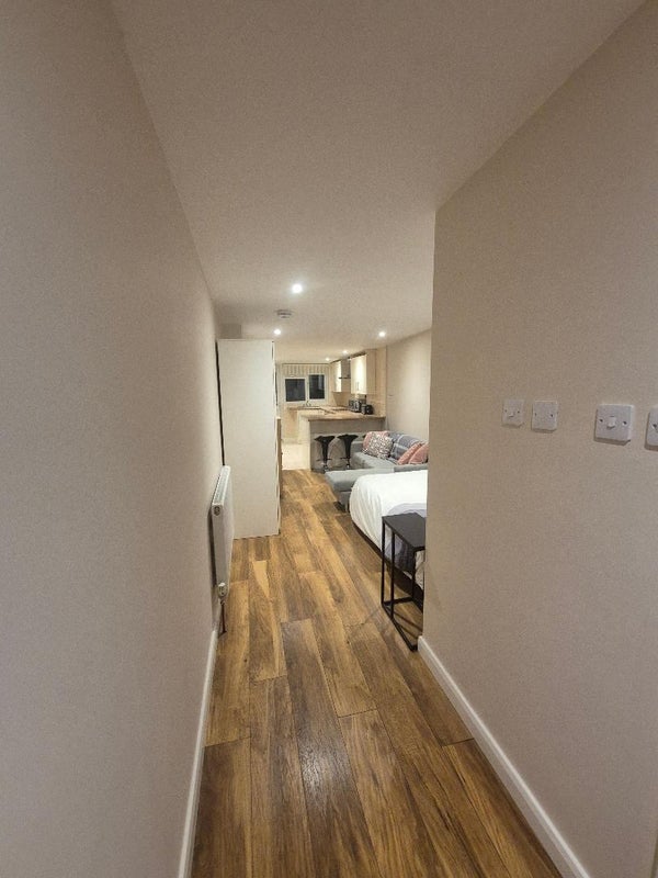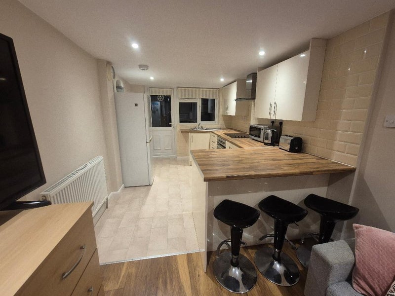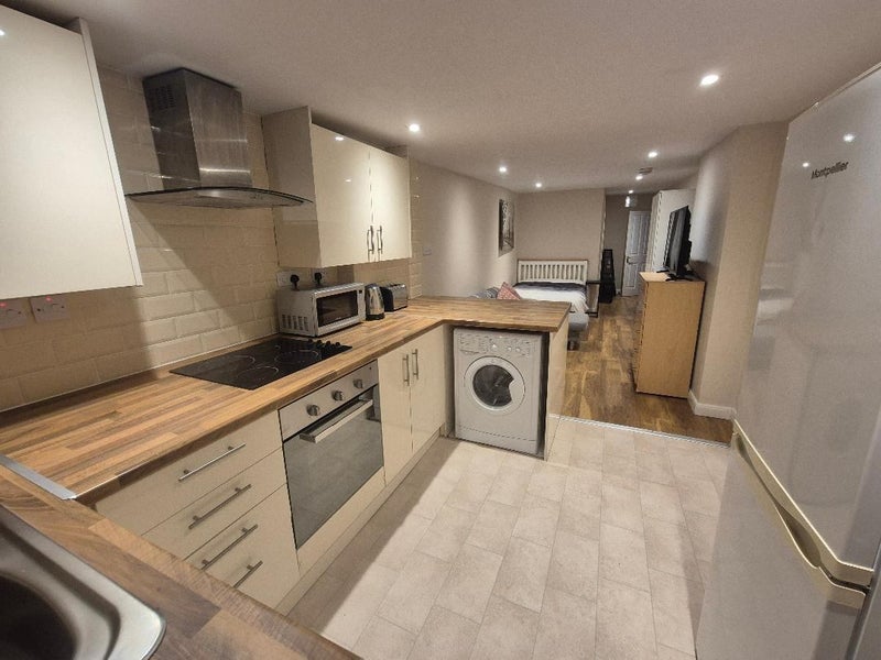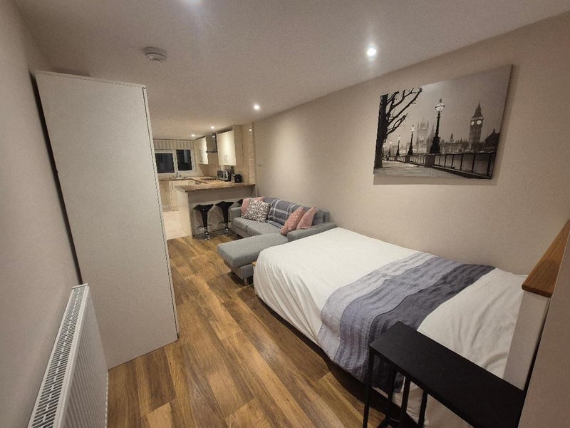 Fully furnished bedsit attached to a family home but totally separate living quarters. Lodger has their own independent living space with access to their own kitchenette, private bathroom and sole patio area (see video). NOT sharing.