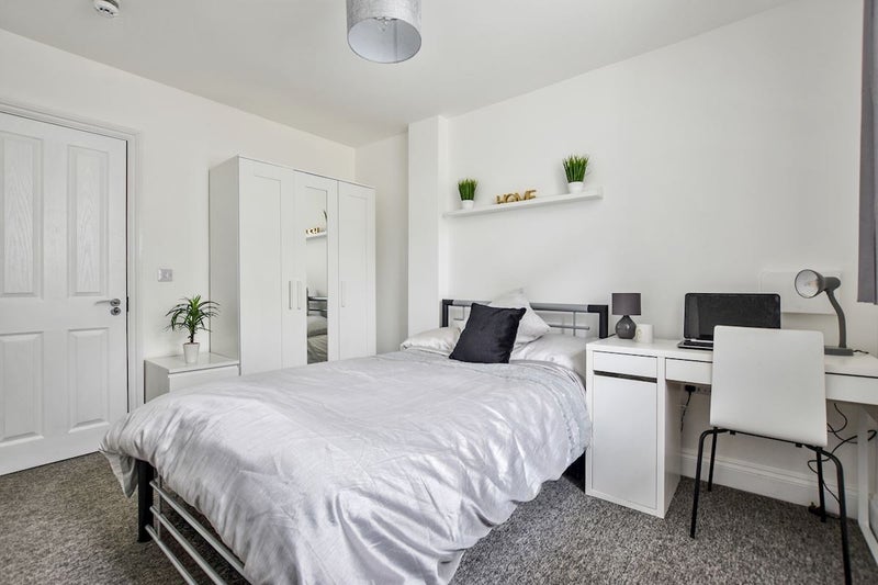 Fully furnished and perfect if you wfh. With a quality large desk and chair and large chest of drawers, a large wardrobe (triple), also lots of under bed storage. The room also has a full length mirror . We provide superior levels of storage as we know how important good storage is.