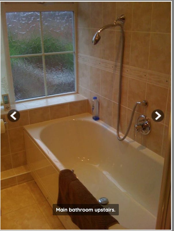 The bathroom is on the first floor with separate bath and shower cubicle with built in radio/iPod/iPhone sound system that includes ceiling mounted speakers.