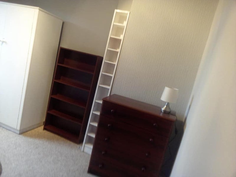 The room available has a double bed, triple wardrobe, six-drawer chest of drawers, foldable table and chair, bookcase, small shelving unit, under bed drawer.
