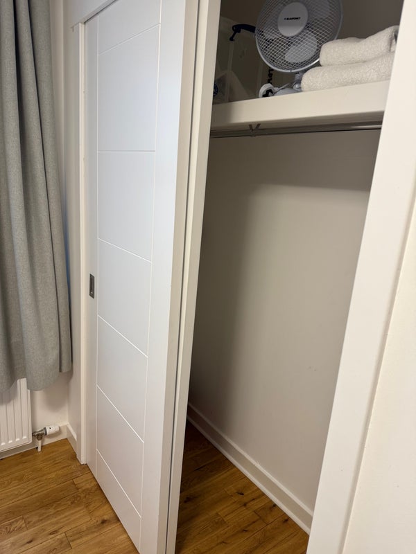 Accommodation: Stylish modern flat. The double room is fully furnished with ample storage space, built in double wardrobe including bed side tables, drawers and flat screen TV.